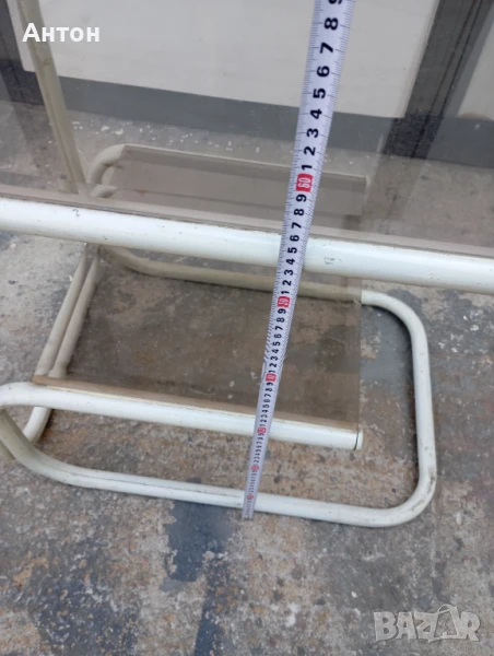 Маса от тръби и стъклени плотове на 2 нива , дължина 58 см , ширина 38 см , височина 56 см