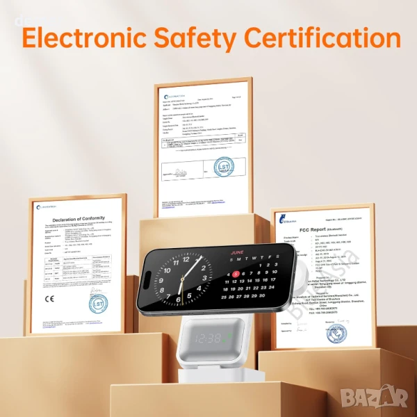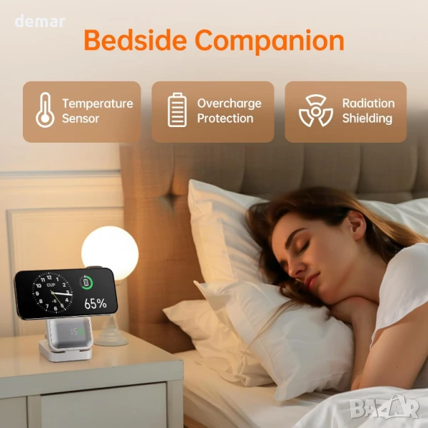 Тази 3-в-1 безжична зарядна станция захранва едновременно вашия телефон, слушалки и смарт часовник, като разполага със сгъваем, удобен за пътуване дизайн с вграден дисплей за време и индикатор за захранване в реално време. Елегантната ѝ конструкция от ABS+PC и алуминиева сплав предлага модерно решение без заплитане, с автоматично подравняване на устройството за лесна употреба. Оборудвана с 30W QC3.0 адаптер и кабел, тя поддържа безопасно и бързо зареждане с наблюдение на температурата и автоматично изключване, когато устройствата са напълно заредени – идеална за употреба у дома, в офиса или при пътуване.