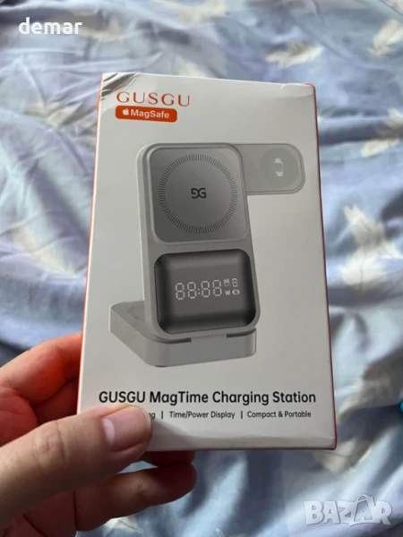 Зарядна станция GUSGU MagTime 4-в-1, сгъваема за Apple (бяла)