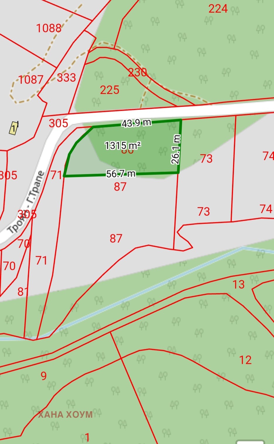 Имотът се намира в с. Горно Трапе, община Троян и представлява следното: