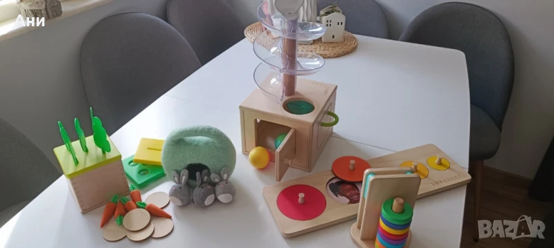 Играчките са подбрани така, че да подпомогнат развитието на фината моторика, логическото мислене, сетивата и самостоятелната игра.