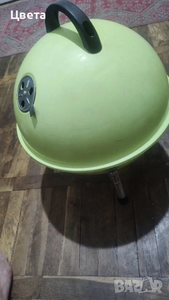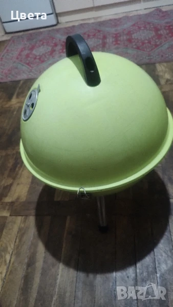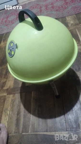удобно барбекю за дома на тераса или двор с капак отгоре на дърени въглища на три крачета е