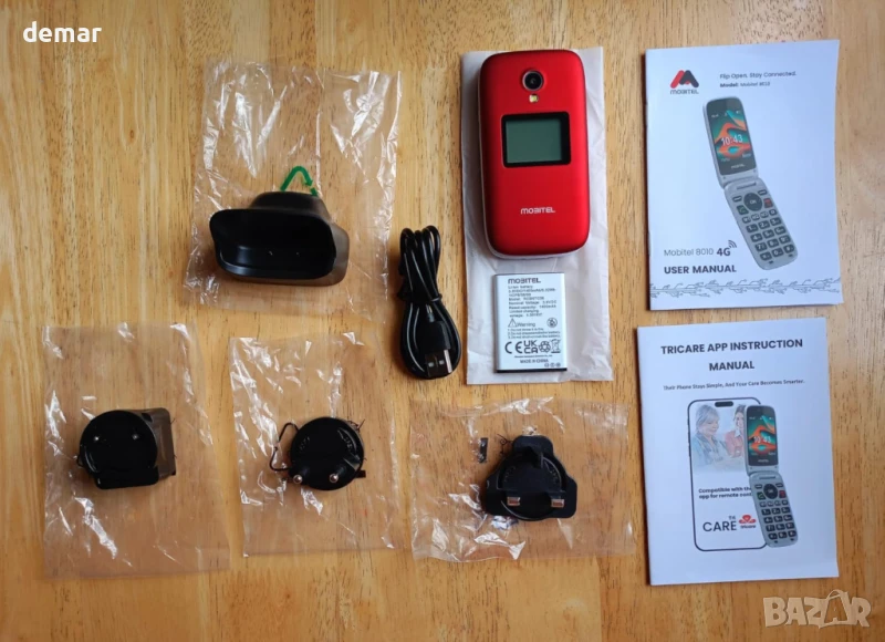 Mobitel 8010 Мобилен телефон за възрастни хора с голeми бутони, сгъваем, 4G, отключен, червен