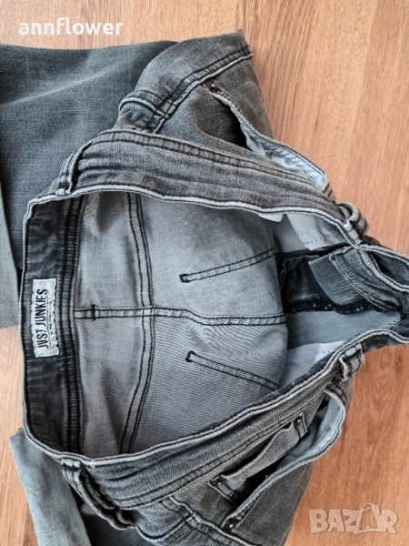 Дънките са нови и оригинални но нямат етикет. цвят сив материя 89,5% памук 7% полиестер 3,5% еластан Размер 30 или М. дължина 54см. талия 80- 84 имат еластичност. ширина на крачола долу без да разстягам 22см едностранно измерен.