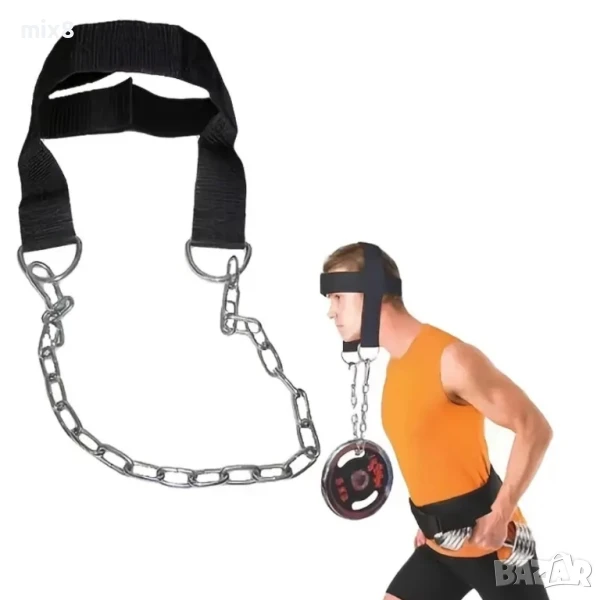 Състои се от дебел ремък, който се поставя около главата, и верига за прикрепяне на тежести (като пудовки или дискове).