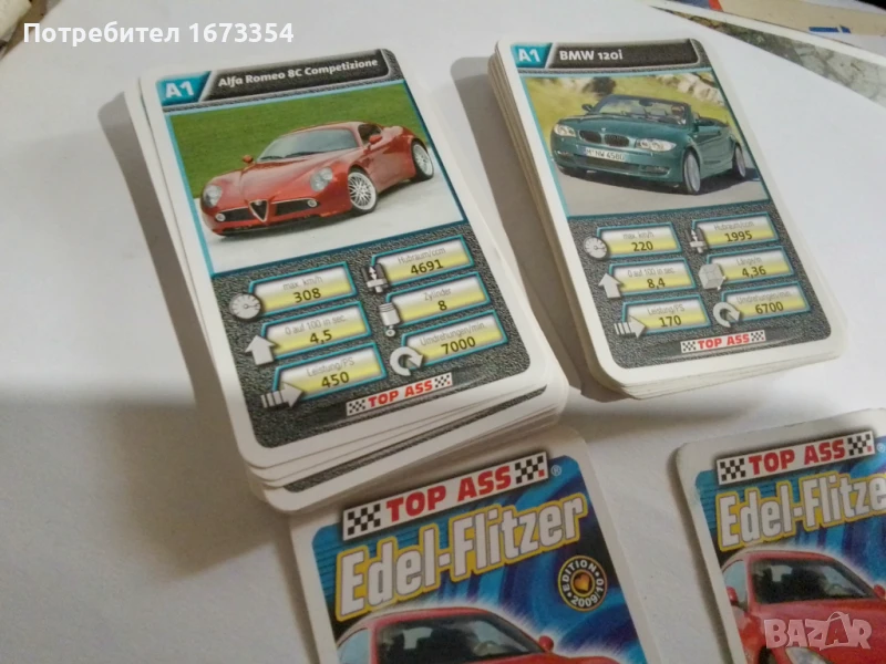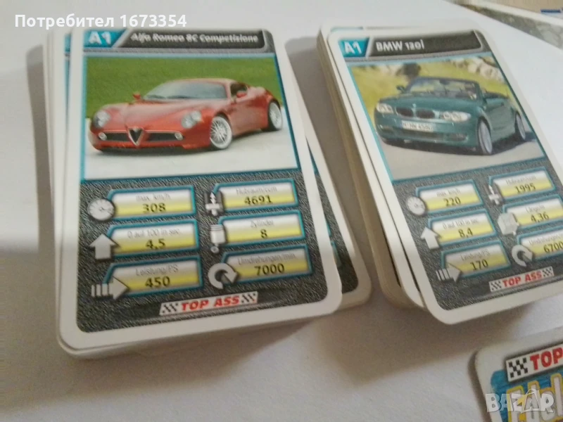 Продавам колекционерски карти за игра ,с коли и данни за всяка кола от снимките ,два комплекта(тестета) от 32 карти + жокер( червената кола)Цена 50.00 лв за един комлект