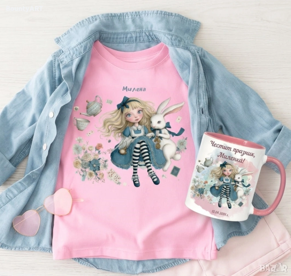 Персонализиран подаръчен комплект- тениска и чаша "Алиса"