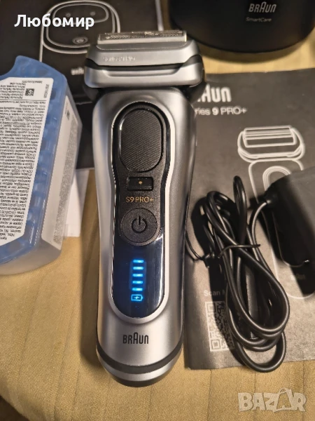 електрическа самобръсначка на Braun и главата ProComfort, подготвяща бръсненето, за по-гладко бръснене от всякога с по-малко движения (тествана спрямо бръснене само с Series 9 PRO+) за максимален комфорт на кожата. Преди бръснене, прикрепете главата ProComfort към самобръсначката с EasyClick, за да масажирате нежно брадата си и да освободите космите изпод кожата. Изключителна прецизност благодарение на Precision ProTrimmer, който перфектно отрязва дори най-дългите косми. Series 9 PRO+ е 100% произведена в Германия. 100% водоустойчива. Мощна литиево-йонна