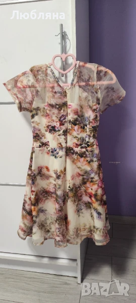 Продавам перфектно запазена рокля с 3D ефект. Носена само веднъж. Отговаря на XS, 158 см