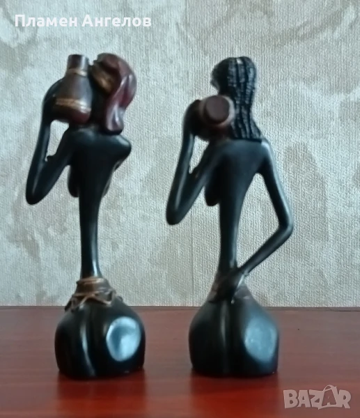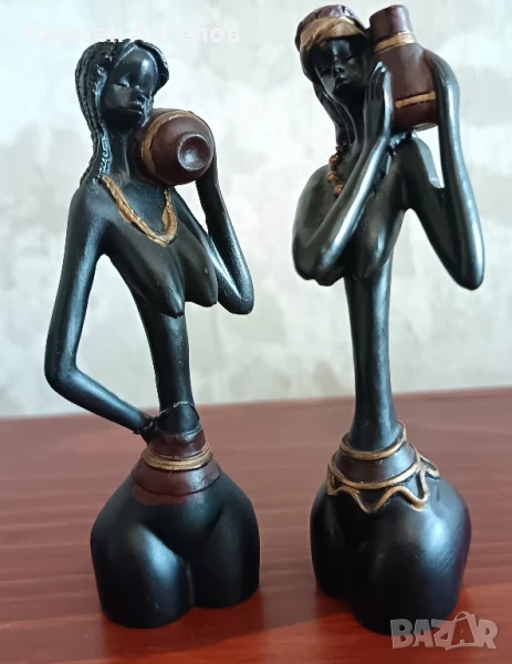 Статуетки, сувенири на африкански жени. Високи 11см.Материал-незнам, пластмаса или друг материал, гладки, звънкави. Теглото на двете е 108 грама. Идеални за украса, декорация.