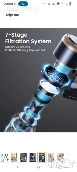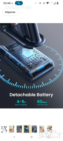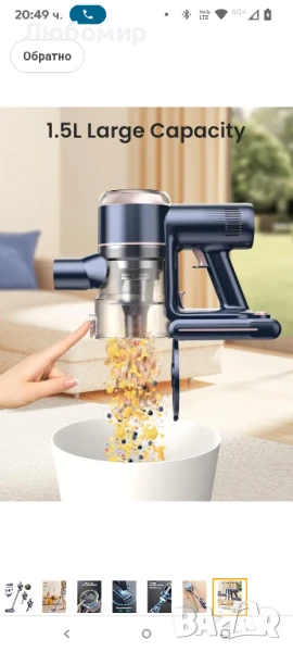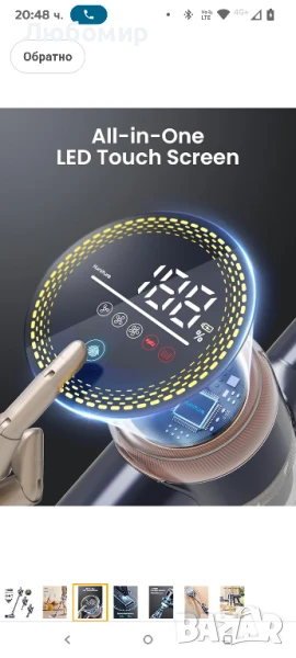 Безжична прахосмукачка HONITURE 38kpa/55mins с OLED екран, акумулаторна батерия, четка против