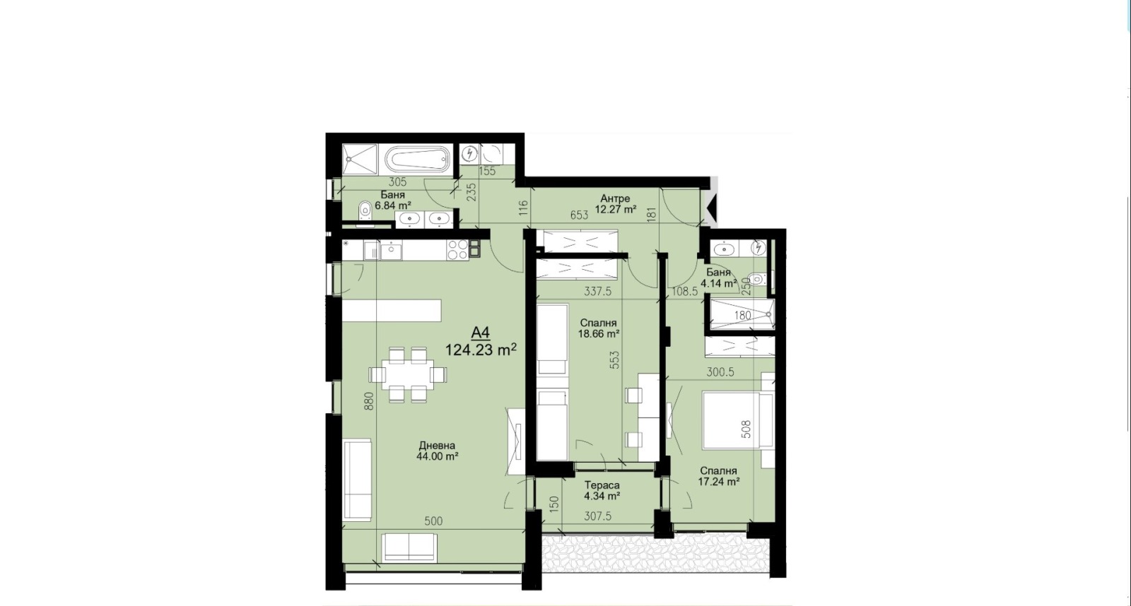 🏗️ Жилището се издава по БДС стандарт шпакловани стени, готово за боядисване и подови настилки, с поставени ключове, контакти и блиндирана входна врата.