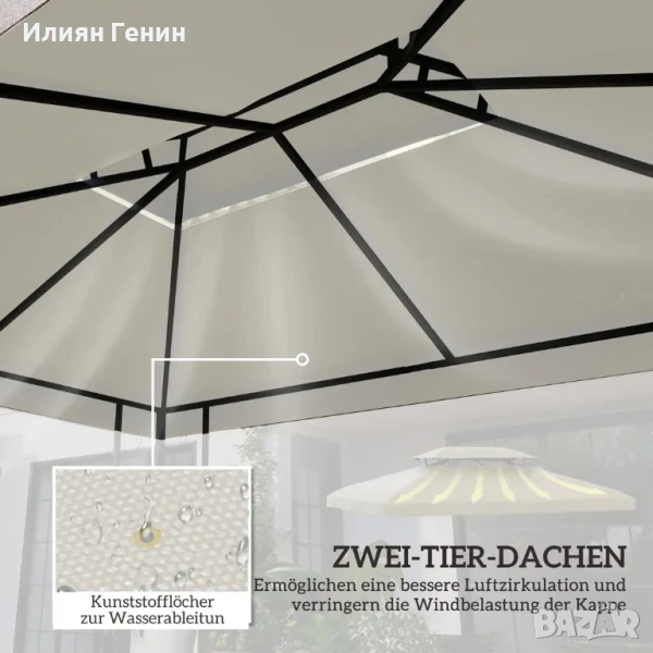 Висококачествен резервен покрив: Този покрив за беседка е подходящ за градински беседки с основна площ 3 x 4 м.