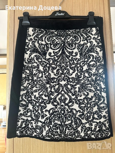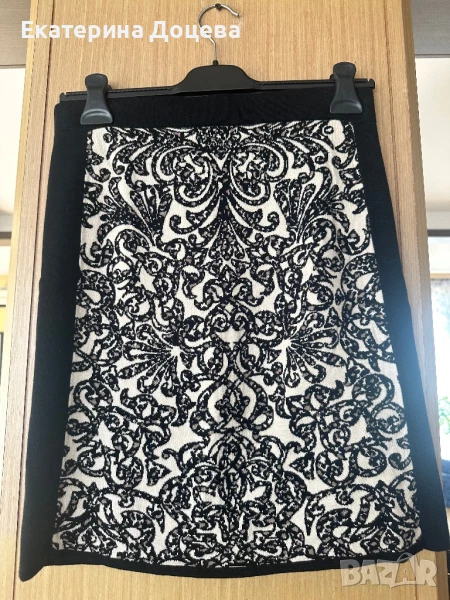 Пола с черен кант и елегантни мотиви. Плетиво с ластик на талията.