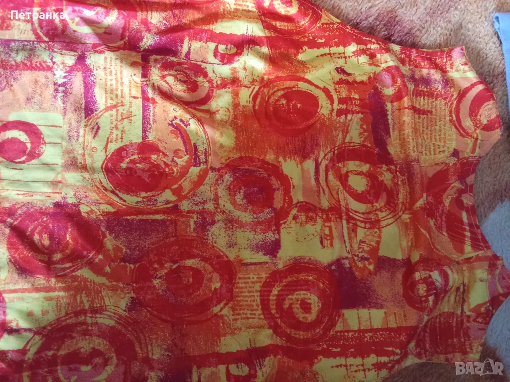 Снимка 4 - българска блуза без ръкав от жарсе, червени и жълти шарки, размер S, цена 1.20 eur