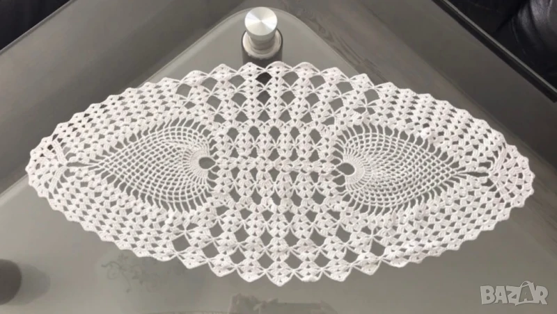 4. Един брой овална покривка с избродирани фигури на листа, 60/28 см. Цена 10 евро;