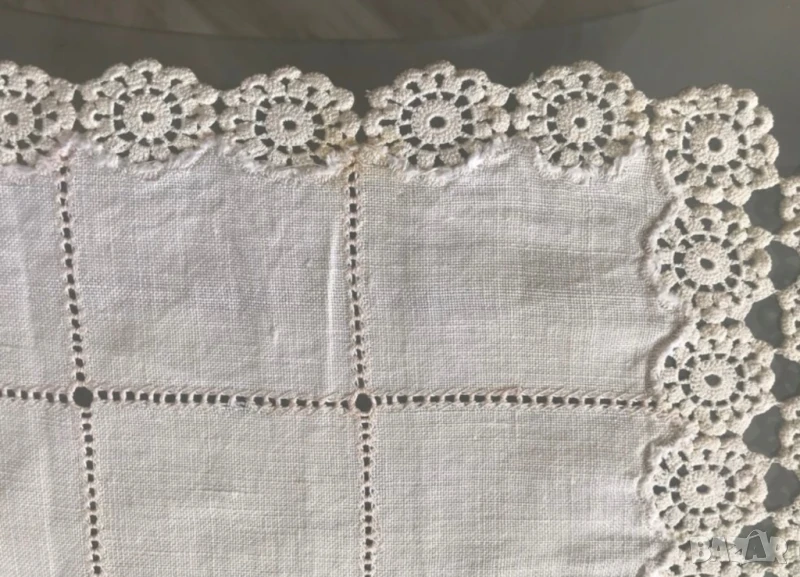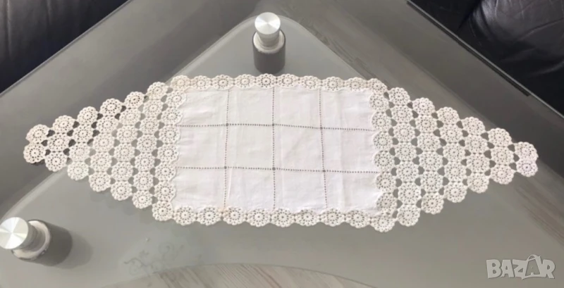 2. Малка, много финна и нежна покривчица за маса, има забележка, видно от снимката, но би се прикрило с предекорация - 75/24 см. - 8 евро;