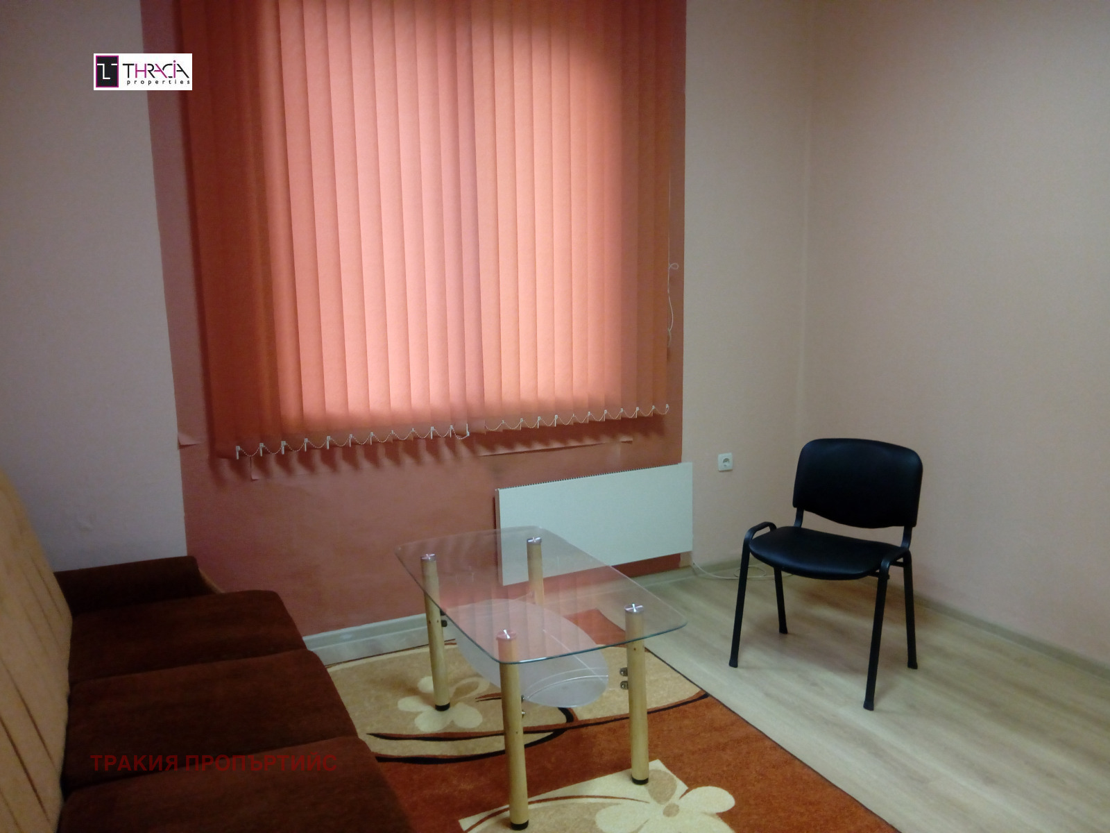 Тракия Пропъртийс представя Ексклузивно: Oфис в центъра на столицата, разположен на улица Братя Миладинови и бул. Стамболийски . Офисът се намира на партерно ниво в тухлена сграда без асансьор. Имотът има площ от 80 кв.м.Разпределение: Коридор; Три работни помещения, две от които имат връзка помежду си; Кухня-може да се използва за кът за отдих, както и съхранение на документи; Баня с тоалетна ; Тераса към вътрешен двор - остъклена и обезопасена. Настилките са ламинат. Стени- нови тапети. PVC дограма с щори и решетки. Луминисцентно осветление. Метална входна врата. Височината на таваните е 3. 50 метра.. Имотът може да се използва както за офис, кантора, учебен център. Отдава се дългосрочно. Тел. за контакти 0882 782 667;0884 556 480