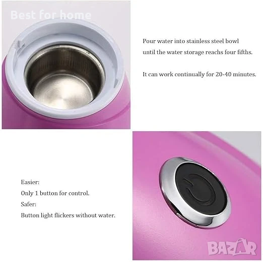 Лесно превключване. Загряване с постоянна температура. Бързо излъчване на мъгла. Почистване на лице, Хидратиране, Сауна, Подходящо за мъже и жени.