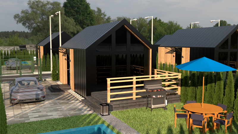 🌿 Изцяло екологична концепция с дървено-метална конструкция и опция за зелени покриви.