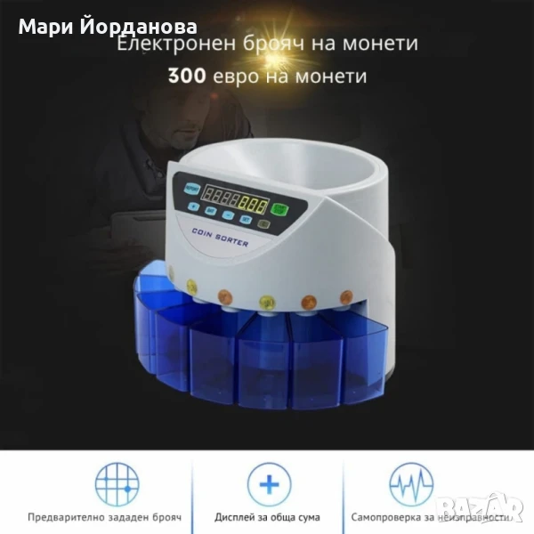 Електрическа броячна машина за монети и в евро – бързо и точно сортиране по номинал, снимка 1 - Друга електроника - 51165901 Електрическа броячна машина за монети и в евро – бързо и точно сортиране по номинал, снимка 2 - Друга електроника - 51165901 Електрическа броячна машина за монети и в евро – бързо и точно сортиране по номинал, снимка 3 - Друга електроника - 51165901 Електрическа броячна машина за монети и в евро – бързо и точно сортиране по номинал, снимка 4 - Друга електроника - 51165901 Електрическа броячна машина за монети и в евро – бързо и точно сортиране по номинал, снимка 5 - Друга електроника - 51165901 Електрическа броячна машина за монети и в евро – бързо и точно сортиране по номинал, снимка 6 - Друга електроника - 51165901 Електрическа броячна машина за монети и в евро – бързо и точно сортиране по номинал, снимка 7 - Друга електроника - 51165901 Електрическа броячна машина за монети и в евро – бързо и точно сортиране по номинал, снимка 8 - Друга електроника - 51165901 1/8