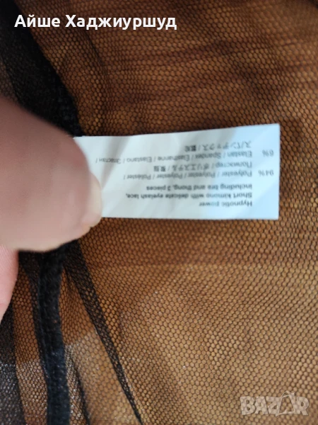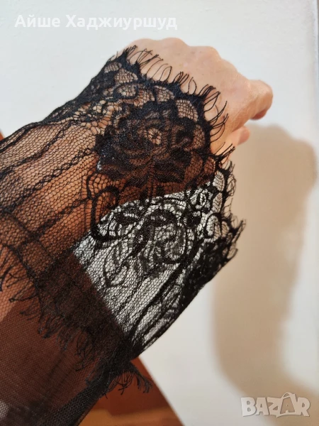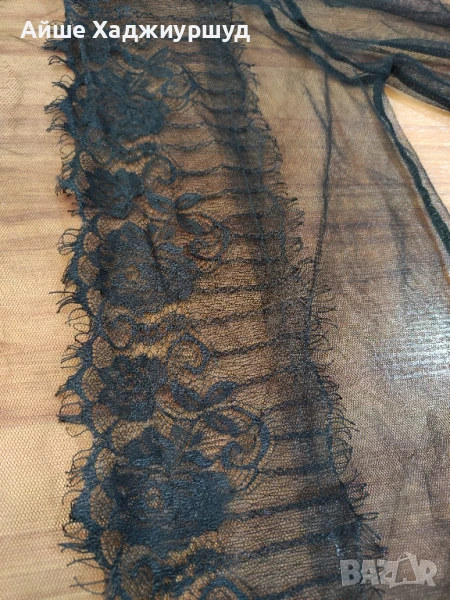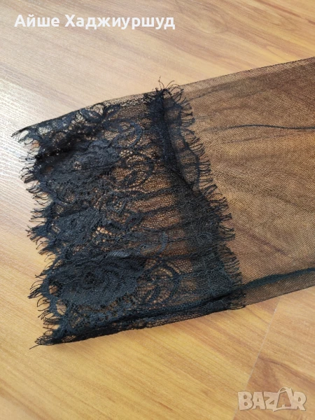 Дамско прозрачно горнище,без копчета,без колан и без джобове,с широка,мека дантела. Състав -94%полиестер,6%еластан, размер S-L, цвят черен.