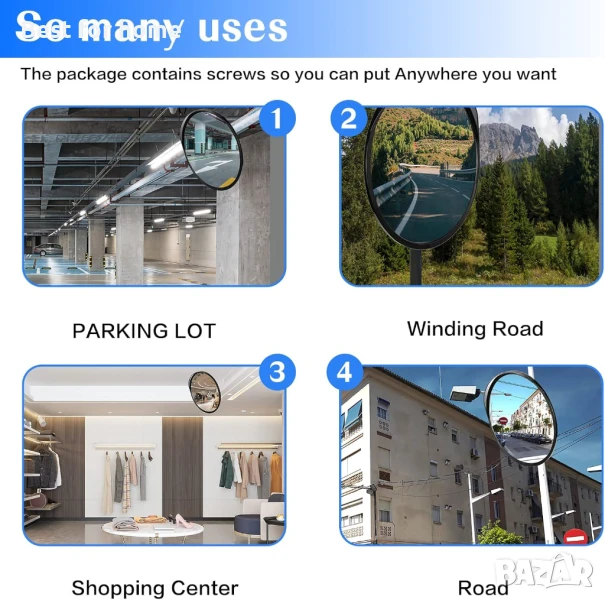Широка гама от приложения: трафик, алеи, магазини, офиси и апартаменти, могат да се използват изпъкнали огледала