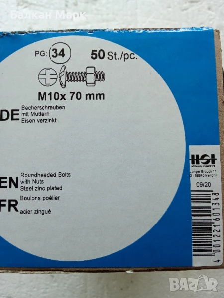 Предлагам комплект от 50 броя болтове +гайки ,с полуобла глава, М10Х70 широка периферия, поцинковани (Zn), с шлиц PZ – идеални за здрави и надеждни монтажи.