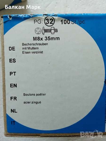 Болтове с полуобла глава и широка периферия Zn, PZ,М8х35 +гайки – 100 броя 🔩