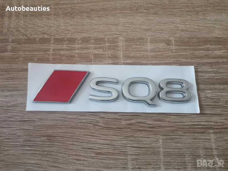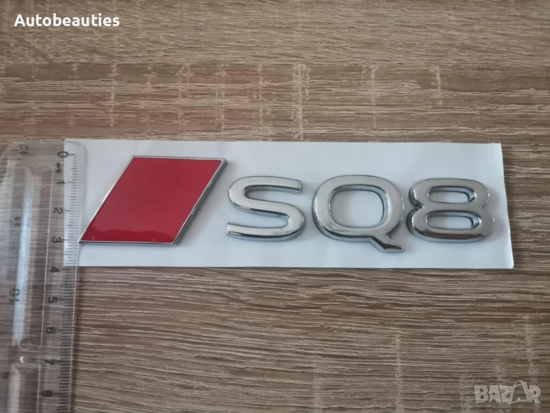 Нова емблема за Audi SQ8 в най-новия стил (след 2023г) в сребристо с червено. Размерите са дадени на снимките.