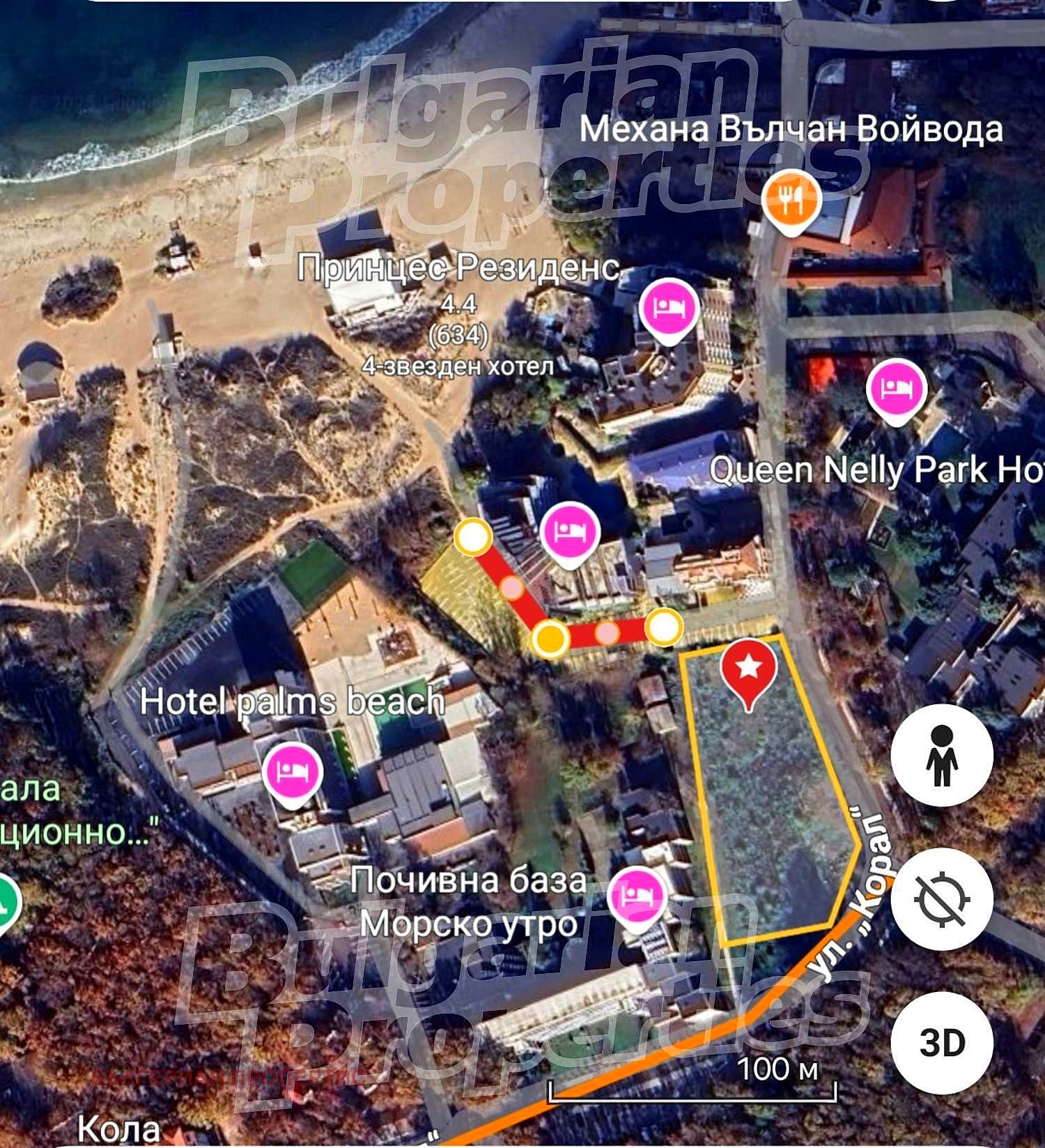 100 м от търговската улица с магазини, ресторанти и заведения