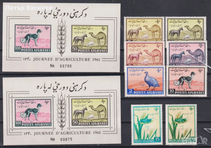 1. Чисти марки (8) и блокове (2) перфориран и неперфориран Флора и Фауна 1961 от Афганистан. Цена 2, 00 лева (сн. 1)