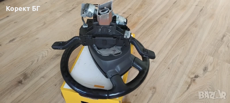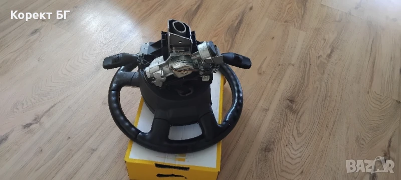 Мултифункционален волан с аербег airbag и лентов кабел + лост за мигачи/чистачки за Форд Ц-макс Ford S-max С-макс и за други Фокус Focus Куга Kuga и други – комплект. Комплектът включва: Мултифункционален волан с бутони за управление и здрав аербег airbag. Лентов кабел . Лост за мигачи и чистачки / превключвател . Всички части са оригинални. Напълно изправни. Гаранция за демонтаж от сервиз! Намира се в Габрово. Желателно е лично предаване. Възможна е доставка с куриер с преглед и тест. Без коментар на цената. 43 години опит! Промоционалната цена е активна до края на седмицата!