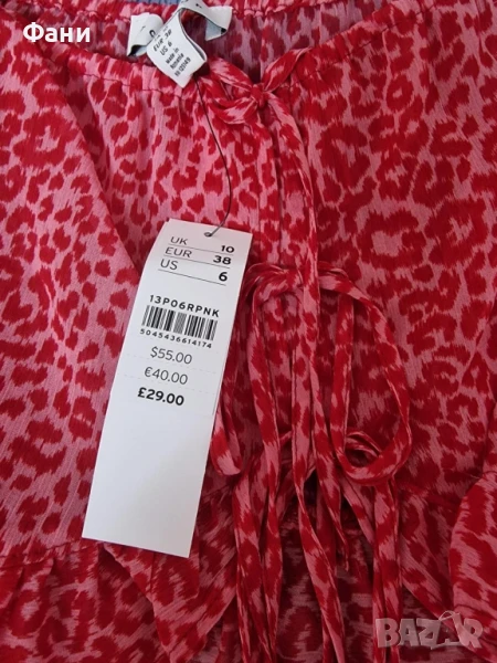 Нови дамски болеро 2 бр.Розово-червена тънка финна материя .Едното е размер Uk 10,EUR 38,разпродажба от магазин марка ToP Shop,реалната цена е 29 паунда,,продава се за 10 лв,последните 2 бр.Другото е размер UK 12,EUR 40