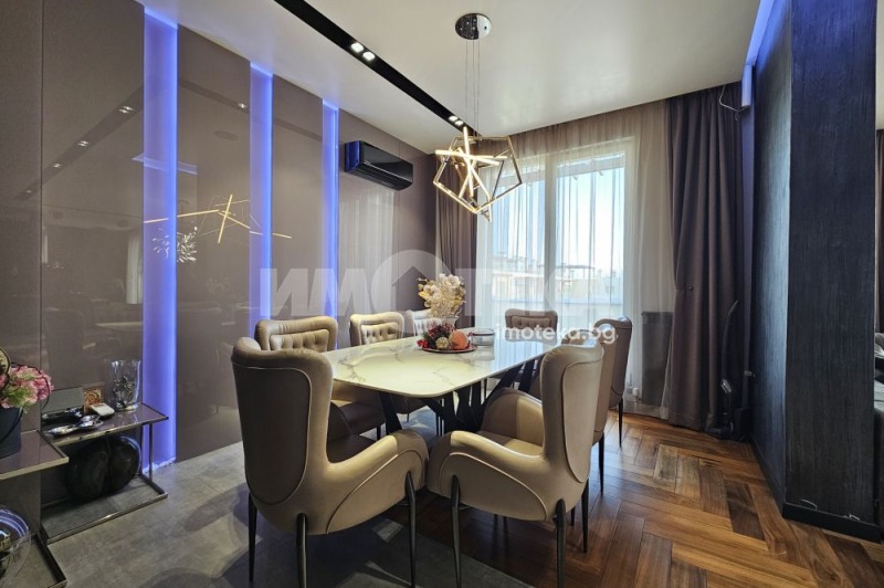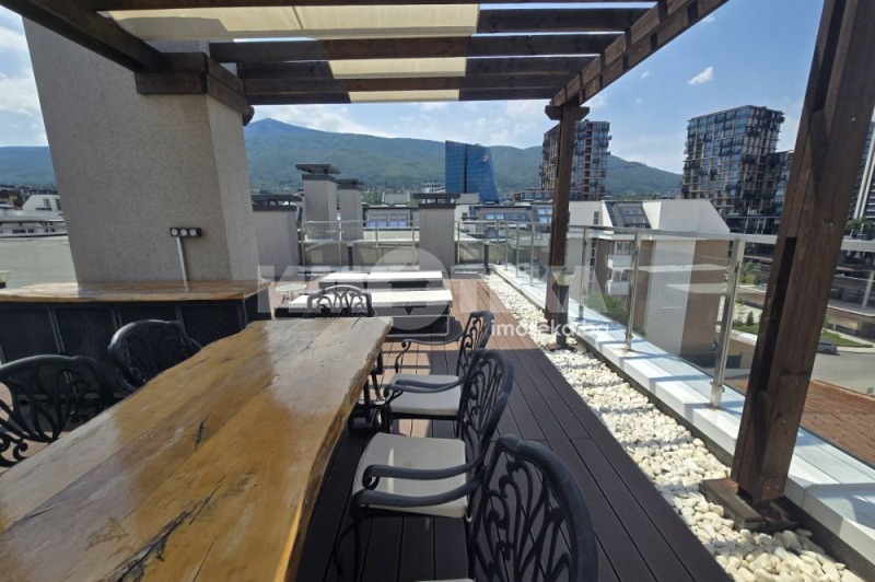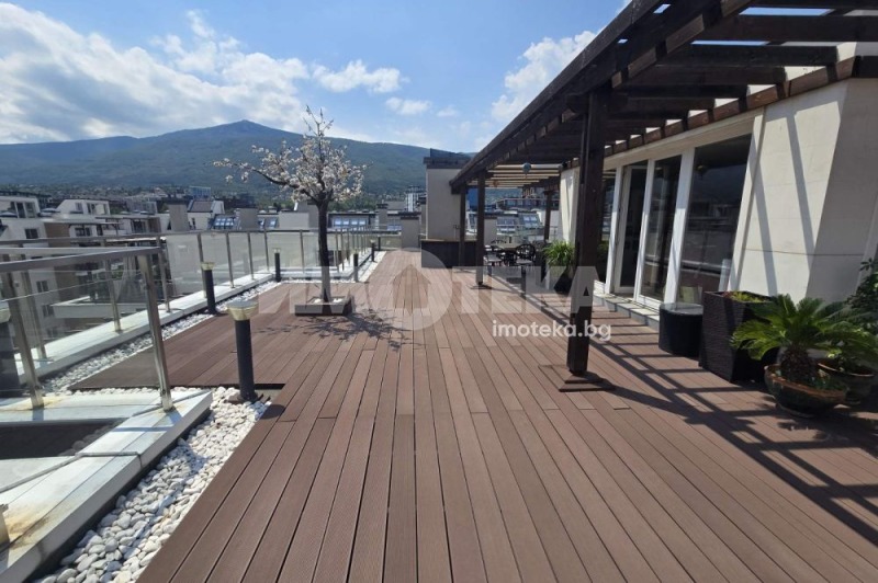 Изключителен пентхаус с четири спални, четири бани и уникална покривна тераса с панорама на 360 градуса, отличаващ се с луксозен и елегантен дизайн. Имотът се намира в премиум затворен комплекс в близост до бул. 'България', на тиха локация с изглед към Витоша. Апартаментът е обзаведен и оборудван с най-висококачествени материали, по индивидуален проект на собственика. С опция за две подземни паркоместа.