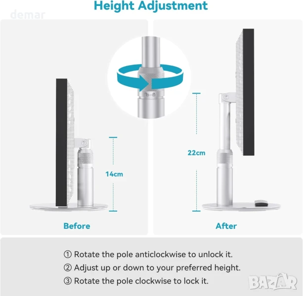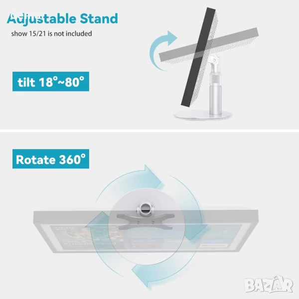 Въртяща се стойка Pitelumeon за Show 15, Show 21,сребриста,регулируема