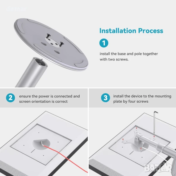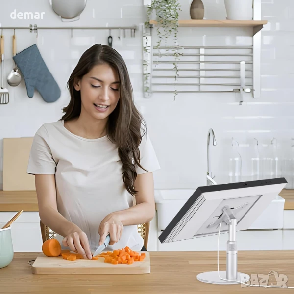 Изработена от издръжлива алуминиева сплав, тази въртяща се и накланяща се стойка за Show 15/21 предлага здрава, устойчива на надраскване опора с лека, но здрава конструкция. Тя се завърта на 360° с диапазон на накланяне от 10–90° за плавно регулиране на ъгъла, идеална за употреба в кухни, спални или дневни. Регулируемият механизъм осигурява стабилно позициониране за гледане на видео или сърфиране, а противоплъзгащите ленти на кръглата основа подобряват сцеплението върху всяка повърхност. Проектирана за гъвкавост и ежедневна надеждност, тя държи устройството ви сигурно и лесно достъпно – просто имайте предвид разположението на кабела по време на въртене.