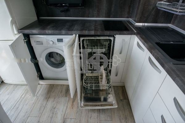Кухня (оборудвана с печка, хладилник, съдомиялна, пералня)