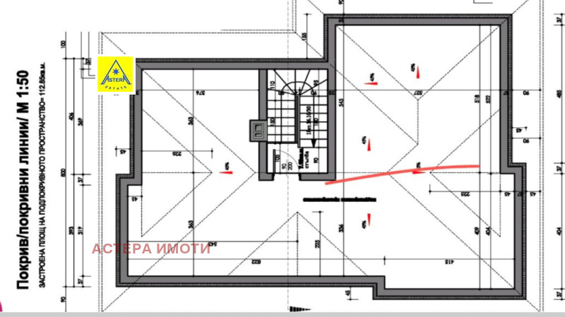 - 2-ри етаж, 112,85 кв.м.: антре, три спални помещения, две бани с тоалетни, мокро помещение, тераса 21 кв.м.;