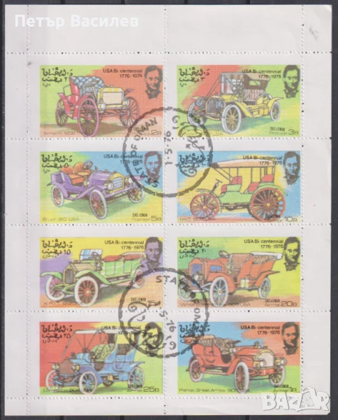Клеймовани марки (8) в малък лист Стари Автомобили 1976 от Оман.
