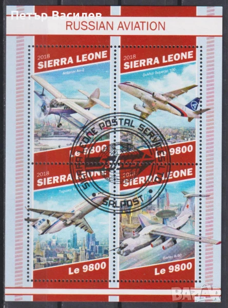 1. Клеймовани марки (4) в малък лист Авиация Самолети 2018 от Сиера Леоне. Цена 5,20 лева (сн. 1)