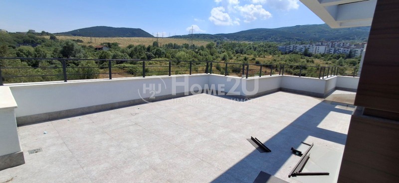 Имота е с АКТ 15, разположен на среден етаж, със следното разпределение: входно антре, всекидневна с кухненски бокс, спалня със собствена баня, втора спалня, отделна баня с тоалетна и просторна тераса, обграждаща целия апартамент. От терасата се разкриват панорамни гледки към природни пейзажи и към града. Апартаментът е с площ от 228 кв.м.