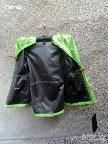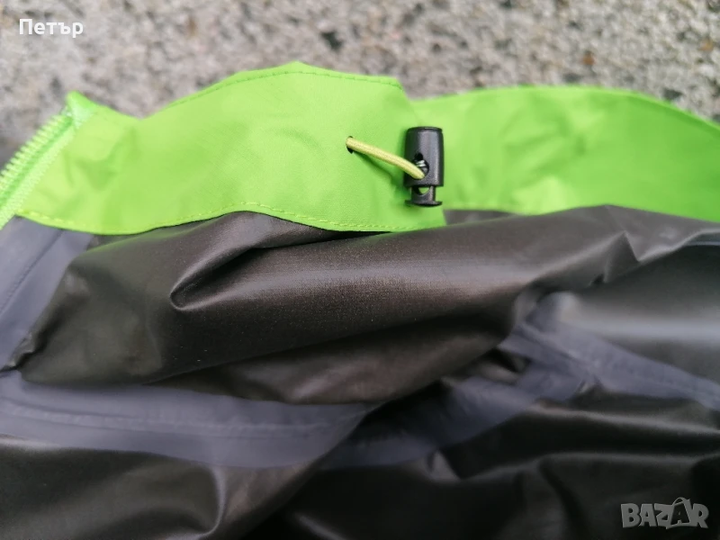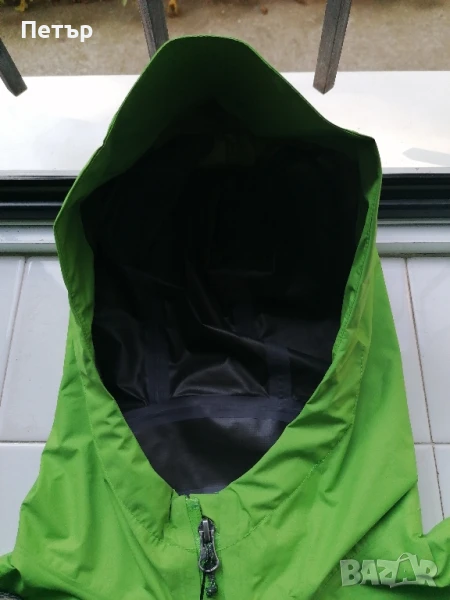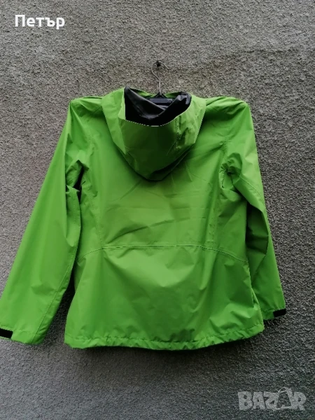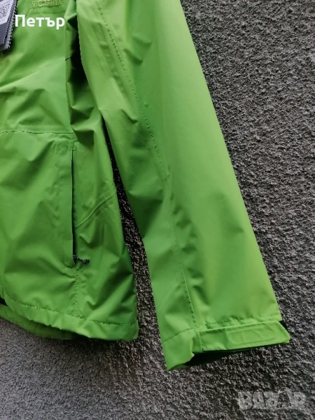 Продавам чисто ново зелено дамско яке с висока водоустойчивост - мембрана Arc'teryx. Якето е с лепени шевове и добро затваряне на качулката със стопери и ластици. Долу също се затяга със стопери. Под мишниците имат дупчици за дишане - вижте една от снимките. Има два джоба с ципове. Ципът отпред е гумиран. Смалени са. Има три размера :