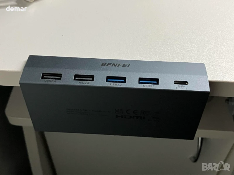 Компактен USB-C хъб със скоба се монтира здраво към монитор или ръб на бюрото (5–36 мм), без да затрупва работното ви пространство, предлагайки чиста конфигурация. Поддържа ярък 4K/60Hz HDMI дисплей (изисква USB-C с видео), зареждане до 85W чрез pass-through (с 15W, запазени за функциите на хъба) и осигурява стабилен 1Gbps Ethernet плюс ултрабърз 10Gbps трансфер на данни през USB-A/C 3.2 портове. Включва 2x USB 3.2, 2x USB 2.0 и 1x USB-C (без видео/данни) за свързване на периферни устройства. Широка съвместимост с устройства - основни лаптопи и таблети.