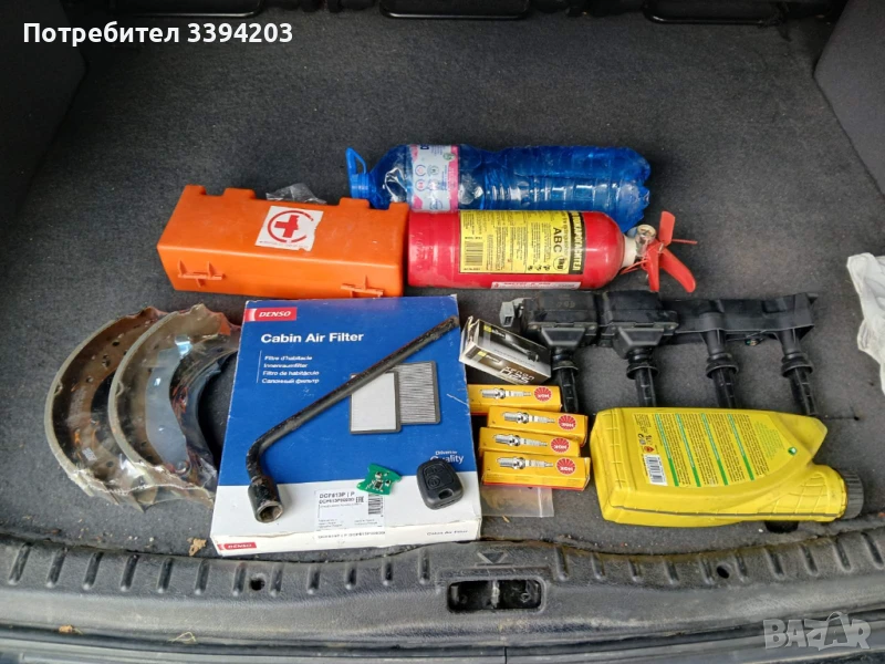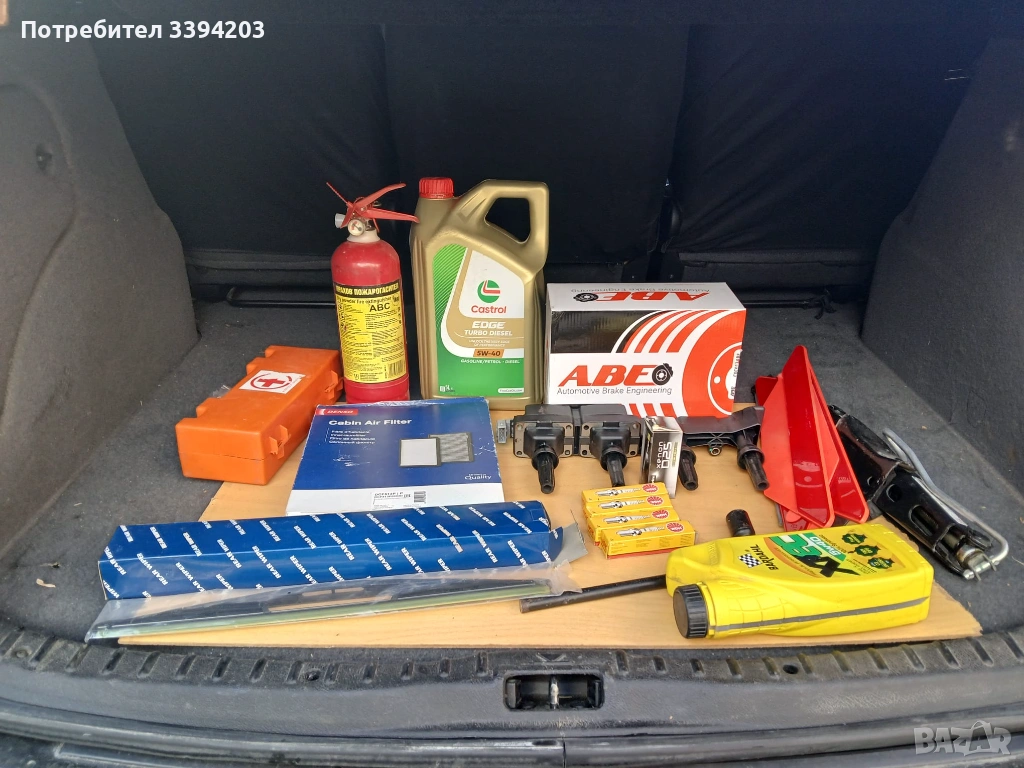 Нова бобина, нови накладки задни и нови свещи + аптечка и триъгълник и ключ за джантите.