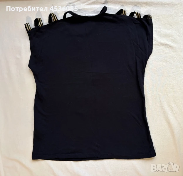Много красива детска блуза LC Waikiki,черна с голо рамо и надпис със златно черни паети.(Блузата беше купена за дъщеря ми но бяхме сгрешили размера и всъщност никога не беше носена.)