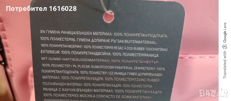 Забележка - Розавата раница е с бледа малка сива следа в долния ъгъл,вижда се на едната снимка.