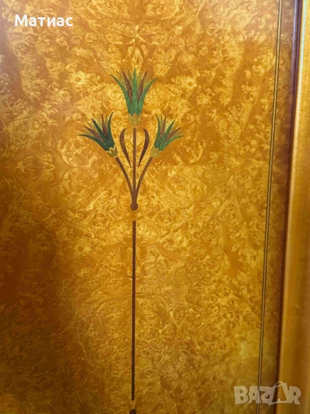 Мебелите са от масивно дърво череша и инкрустации