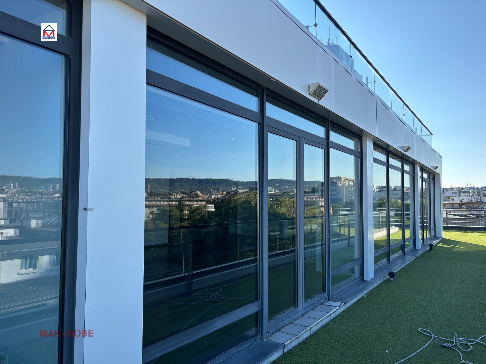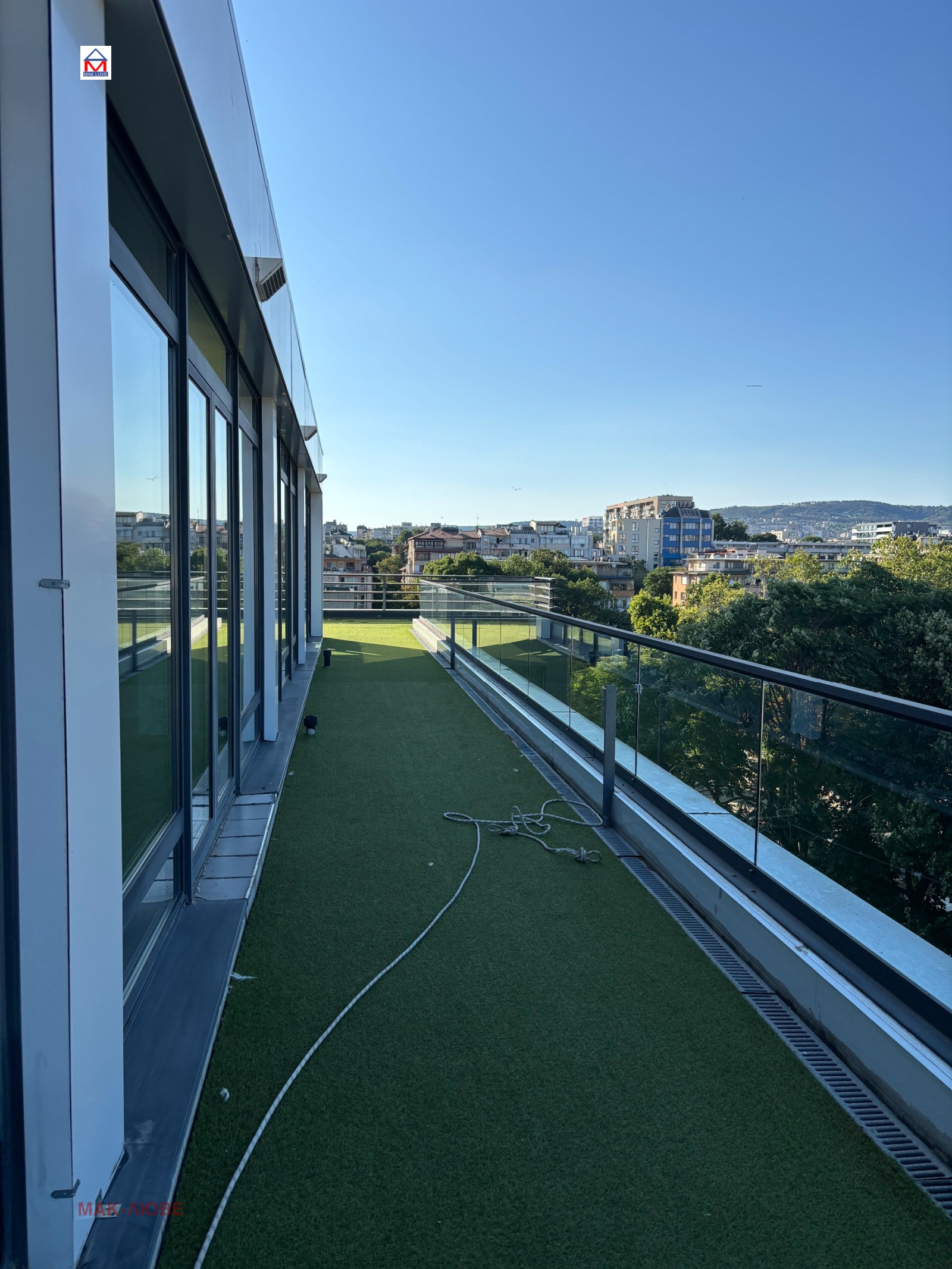 Недвижими имоти 'Мак Люве' предлага под наем луксозно помещение със статут ОФИС в центъра на Варна, до Общината, с панорамна морска гледка. Имота се намира на 6 етаж в нова, престижна сграда с модерна архитектура и отлично поддържани общи части. Застроена площ 400 кв.м., които са разпределени на 4 помещения, с общите части 500 кв.м.. Към офисите има 200 кв.м. тераси с панорамна гледка към морето и града .Идеални за отдих, представителни събития или открити работни зони с изглед, който вдъхновява.