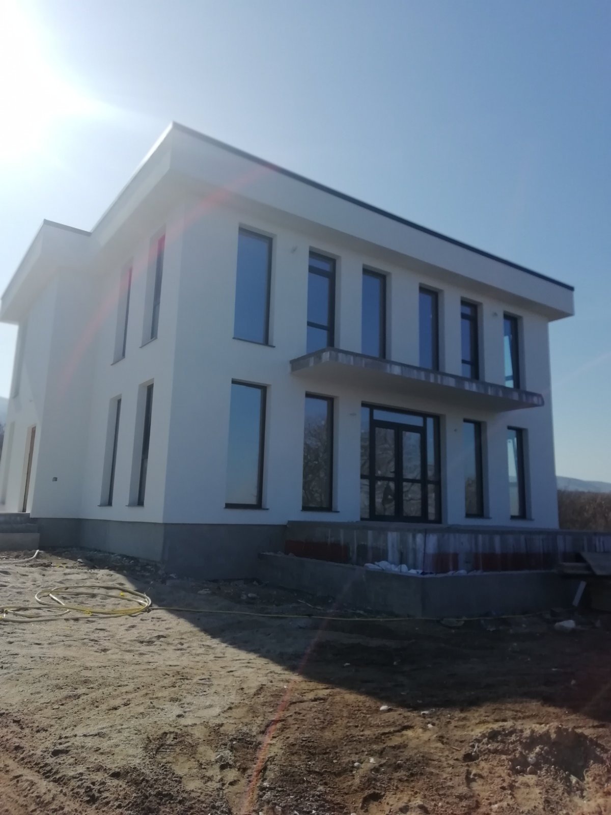 Къщата е с акт 14, което позволява банково кредитиране. Акт 16 се очаква до няколко месеца . Къщата се намира на много комуникативно място с прекрасена гледка към Пловдив. В близост има нови къщи ,но гледката не може да бъде закрита поради место положението на имота.Къщата е с модерна визия .Изградена с качественни материали и от безупречни строители.Стаите са просторни и слънчеви .Първият етаж се състои от коридор,баня и тоалетна, хол , трапезария и кухненски бокс с площ от 47 кв.м, голяма веранда към хола,две просторни спални ,които могат да се ползват пожелание на копувача,като кабинет и стая за гости.Стълбището към вторият етаж е осветено от голям прозорец.Вторият етаж се състои от коридор,баня и тоалетна ,три спални .Едната е 23 кв.м Другата 15 кв.м.Третата родителска спалня е 23 кв.м .Към родителската спалня има отделна баня с тоалетна и гардеробно помещение . От спалните се излиза на тераси от,които се открива прекрасна гледка .Двора е ограден с хубава ограда. Изравнен е и подготвен за озеленяване.Пътеките ще бъдат павирани .Има предвидени места за паркиране.Изолацията на къщата е от каменна вата,6 камерна дограма с троен стъкло пакет.Има сонда в двора с голям дебит на вода,която е свързана с ВИК инсталацията на къщата .Процедурата за присъединяване към EVN e задействана и платена.Ямата за обратната вода е изградена и свързана с къщата . За повече информация и оглед на 0876363659